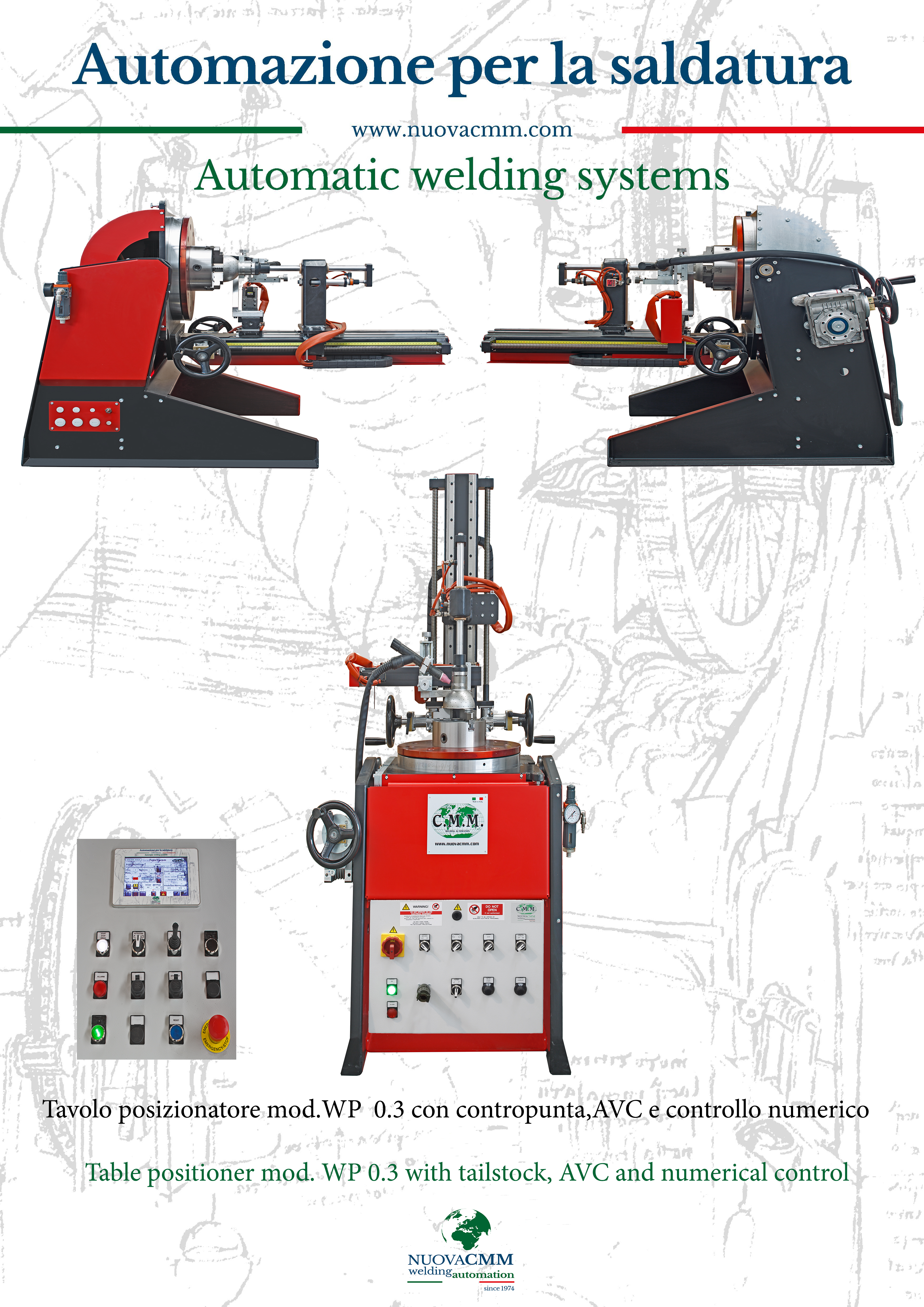 Posizionatore a tavola con due gradi di libertà: rotazione (motorizzata a velocità variabile) e inclinazione (motorizzata o idraulica). La capacità di carico varia da 500 a 12.000 kg.